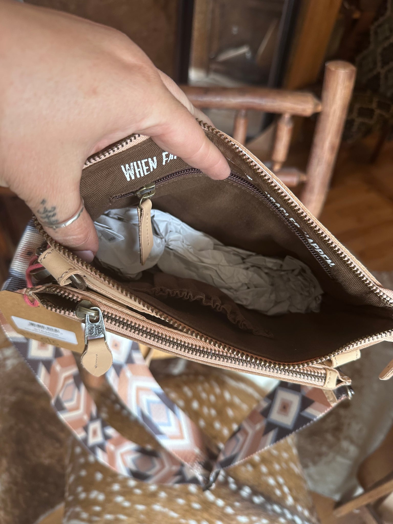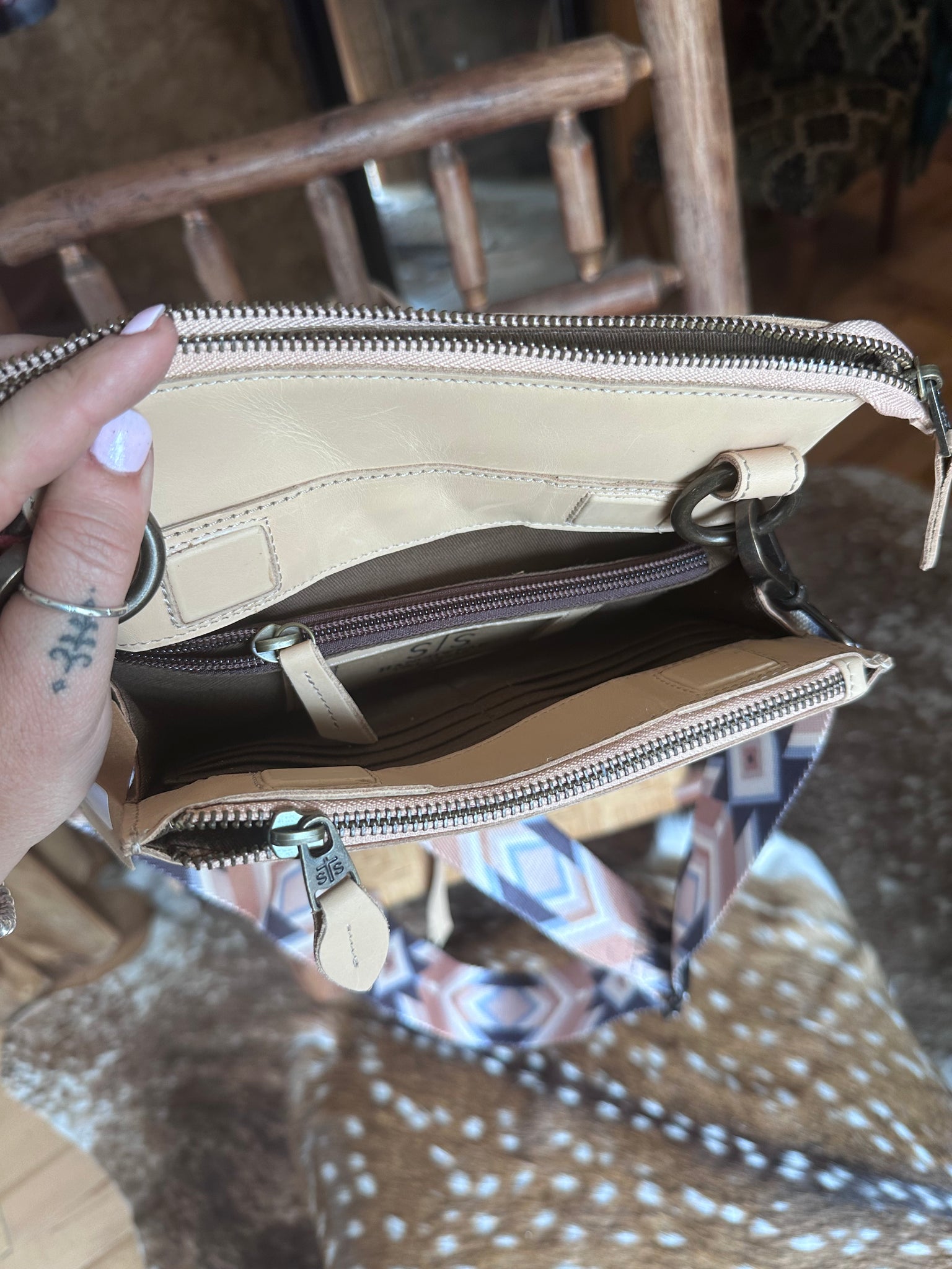 - 1 removable/adjustable leather crossbody strap