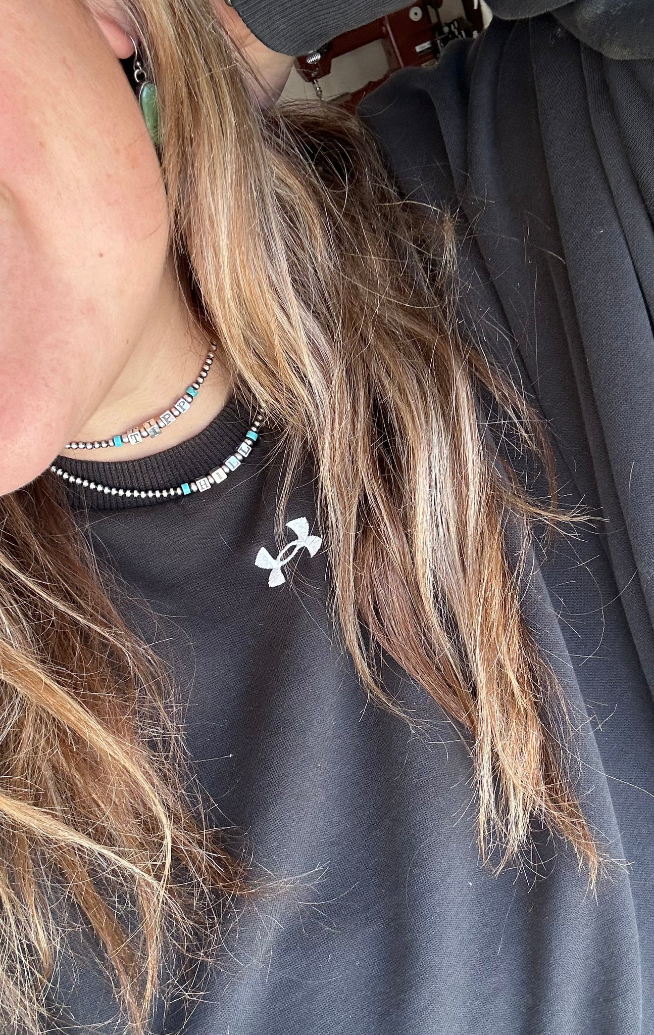 All sterling silver 3mm Navajo pearls leading down to 4mm sterling silver letter charms! Each necklace comes with a 2” chain extension.