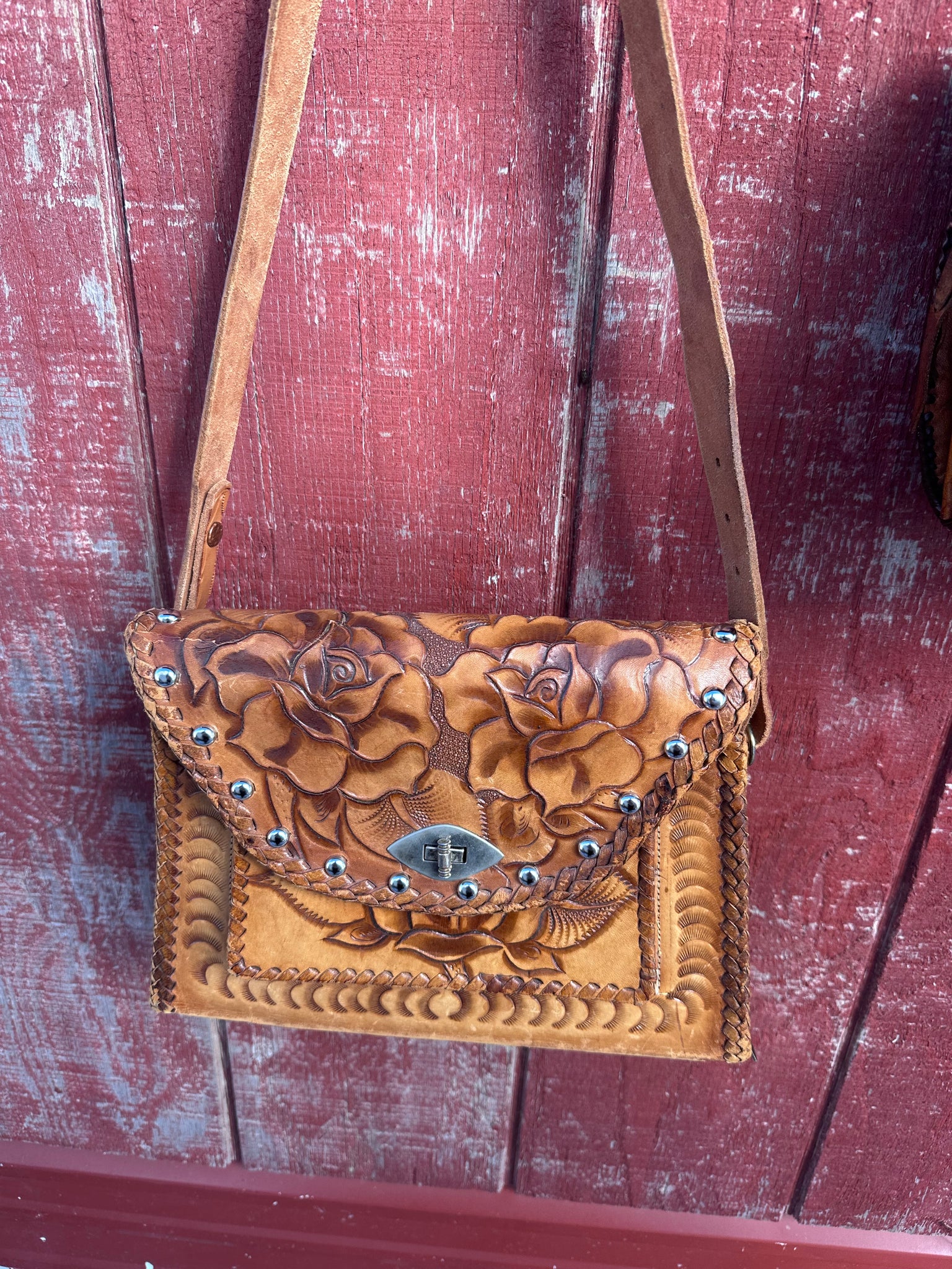 This bag is in vintage condition, with a new belt strap, and added rivets!