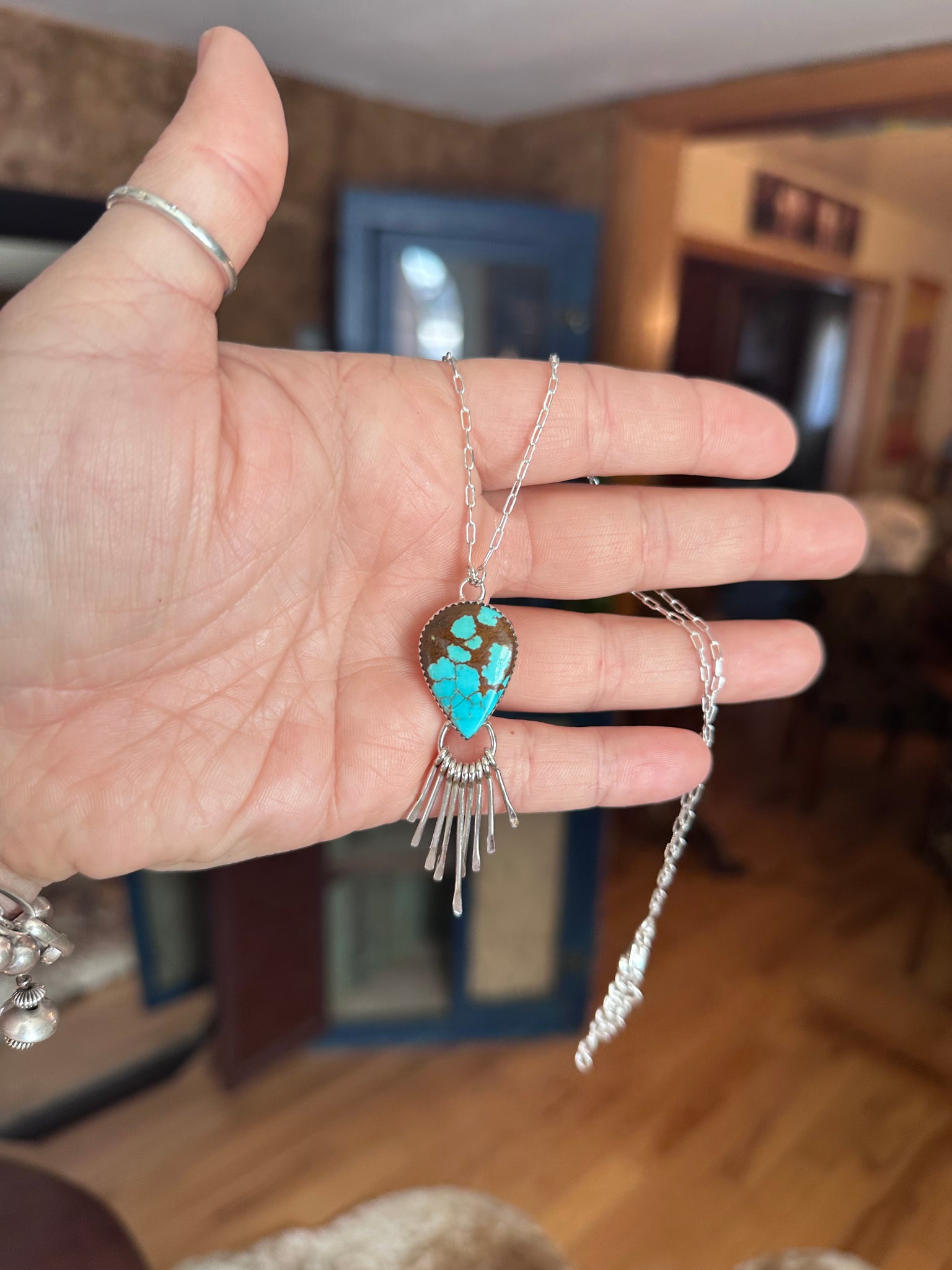 Sterling silver, mine 8 Turquoise on a 18" chain plus extender